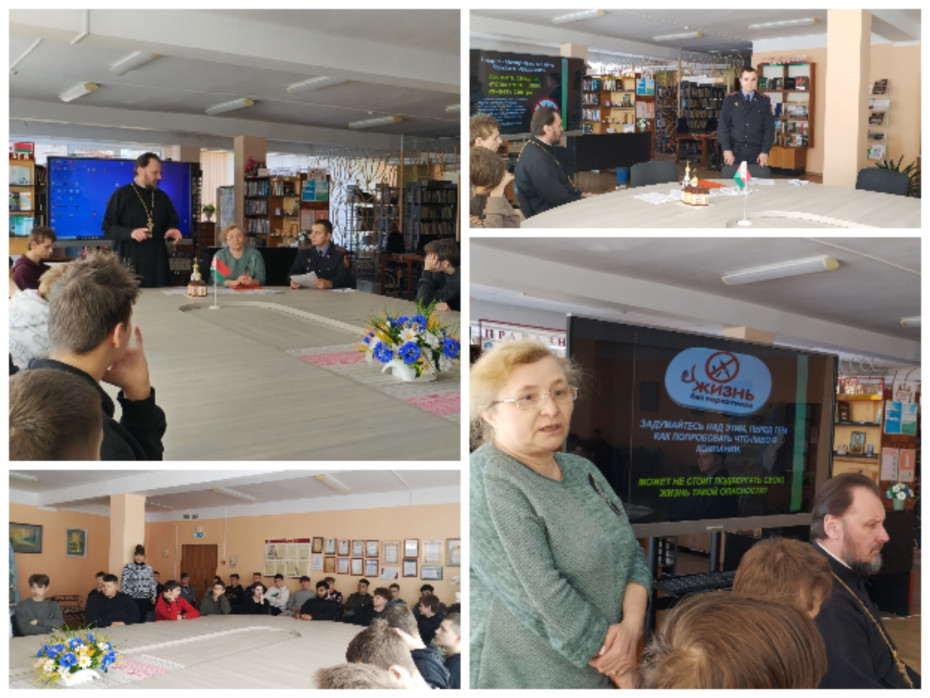 Гости встречи: настоятель храма мученика младенца Гавриила Белостокского в городе Ивье протоиерей Вячеслав Пашкевич, инструктор-валеолог ГУ«Ивьевский районный центр гигиены и эпидемиологии» Татьяна Николаевна Кондратович, старший инспектор ИДН Ивьевского РОВД лейтенант милиции Даниил Иванович Шлемпо.