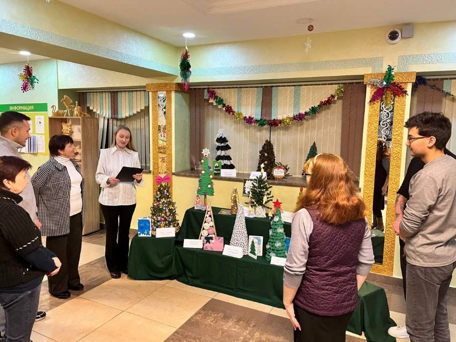 У Iўeўcкiм цэнтры культуры i вольнага часу працуе раённая выстаўка-конкурс па дэкаратыўна-прыкладному мастацтву “Навагодняя ялiнка”.