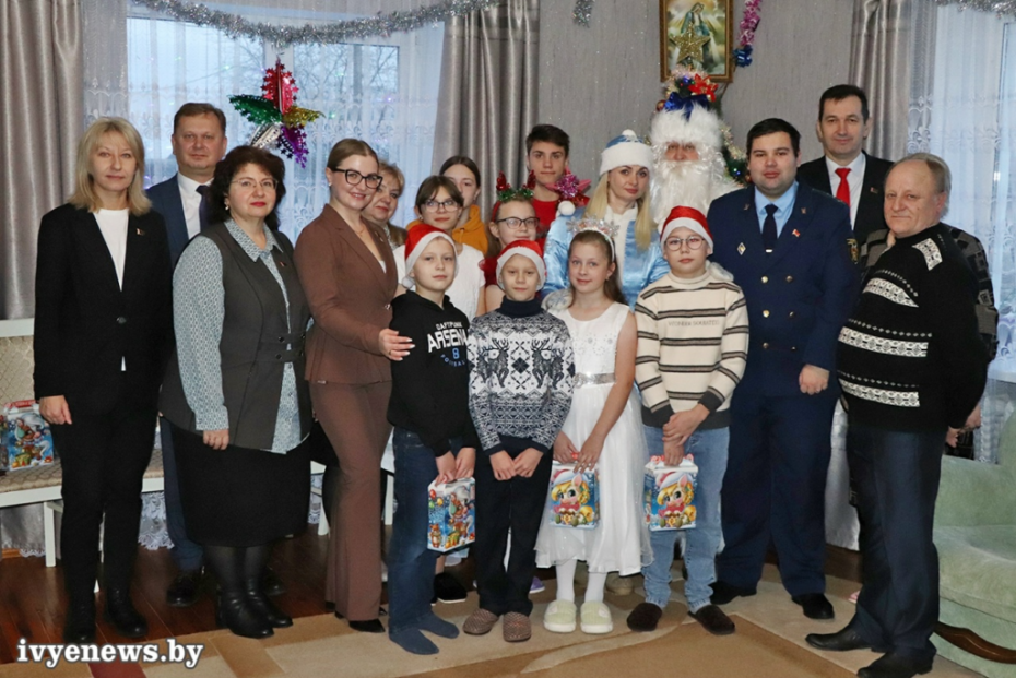 Воспитанников ЦКРОиР и детского дома семейного типа г. Ивье с наступающими праздниками поздравили председатель Ивьевского райисполкома Игорь Генец, депутат Палаты представителей Национального собрания Республики Беларусь Виталий Раковец, заместитель прокурора Ивьевского района Тимур Темиров, председатель суда Ивьевского района Мария Кохановская, заместитель начальника отдела образования Ивьевского райисполкома Светлана Рынкевич, председатель Ивьевской районной организации Белорусского профессионального союза работников образования и науки Тереса Богинь.
