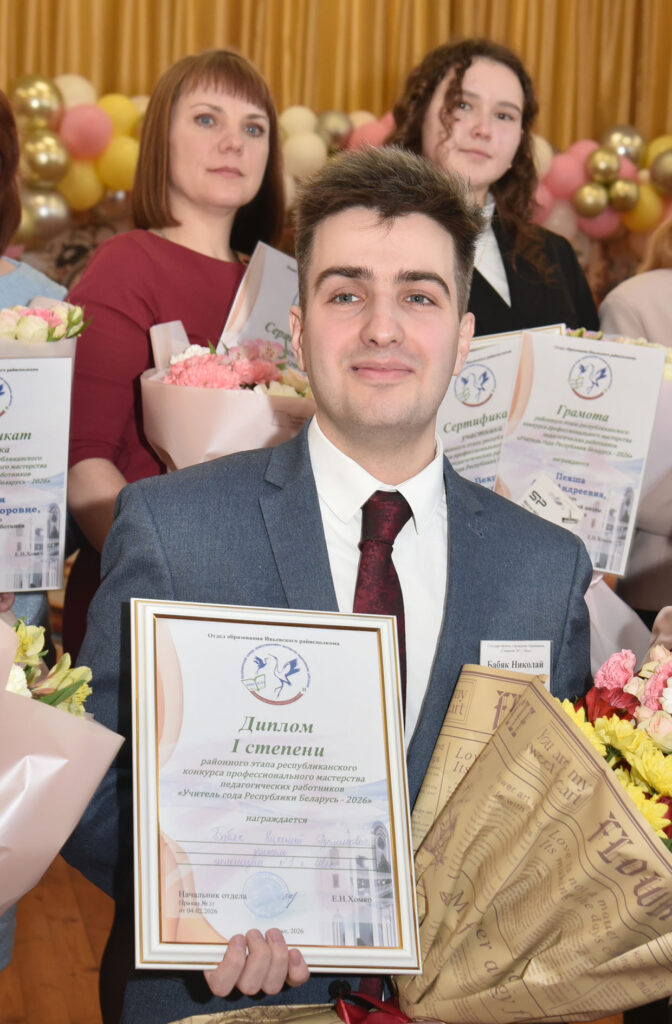 И одна за другой на сцену вышли педагогические звезды: Анна Хобян, педагог дошкольного образования – профессионал, готовый к инновациям, Марина Черевик, педагог Ивьевской начальной школы, для которой воспитание – искусство создавать счастливое детство, Анна Соколовская, учитель химии Ивьевской средней школы – учитель-новатор, зажигающая в детях искру интереса к науке, Алексей Микша, учитель английского языка Трабской средней школы, на чьих уроках грамматика становится суперсилой, Николай Бабяк, учитель истории гимназии №1 г. Ивье, в чьей аудитории оживают эпохи и звучат голоса предков.