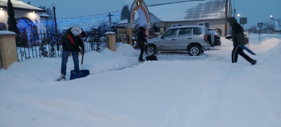 Участники волонтерского отряда «Твори добро» оказали помощь по расчистке снега на территории Храма младенца Гаврии́ла Белосто́кского в городе Ивье.