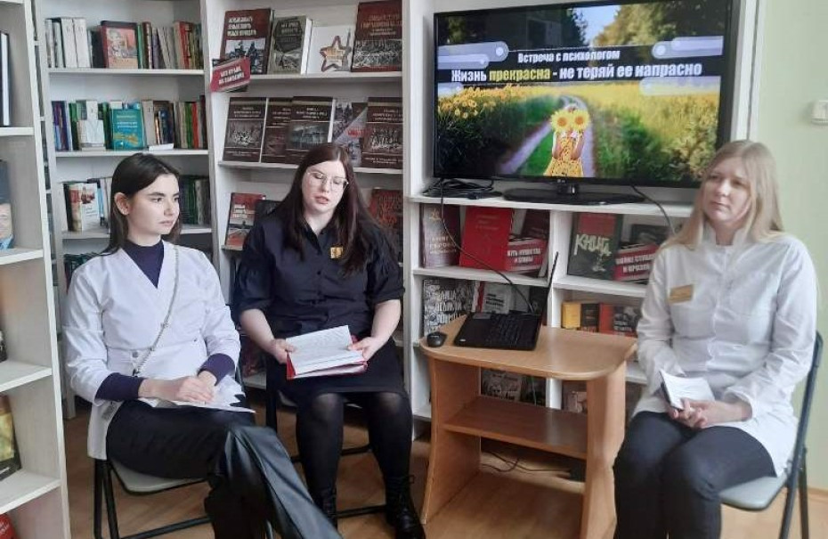 В Ивьевской районной библиотеке состоялась встреча со специалистами центральной районной больницы: психологом В.В. Лопато, валеологом А.В. Головенко и психотерапевтом В.Х. Аль Абдаллах. Мероприятие прошло под жизнеутверждающим названием «Жизнь прекрасна – не теряй ее напрасно».