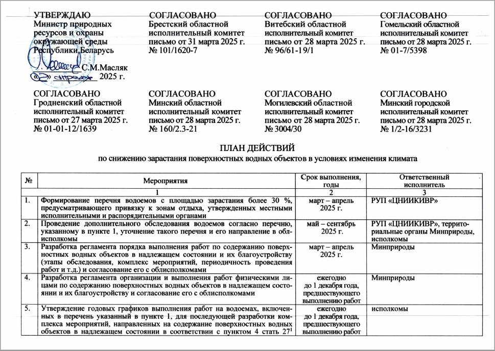План действий по снижению зарастания поверхностных водных объектов в условиях изменения