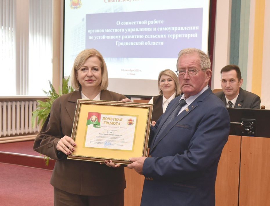 «О совместной работе органов работе местного управления и самоуправления по устойчивому развитию сельских населенных территорий Гродненской области» – на такую тему на базе Ивьевского района проходит выездная сессия Гродненского областного Совета депутатов. Участие в ней приняли председатель Гродненского областного Совета депутатов Елена Пасюта, председатель Ивьевского райисполкома Игорь Генец, депутат Палаты представителей Национального собрания Республики Беларусь Валентин Семеняко, депутаты областного и районного Совета депутатов.