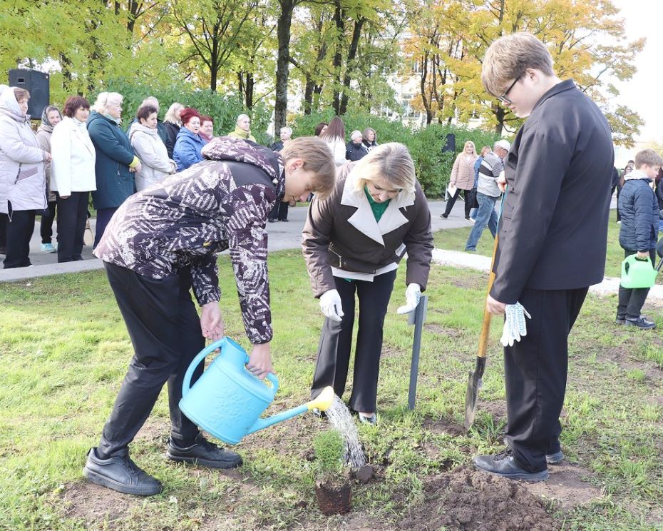 В знак продолжения жизни и благодарности рядом с памятным знаком были высажены деревья. Их высаживали представители власти, ликвидаторы аварии и гимназисты. Вот такая видимая связь поколений.
